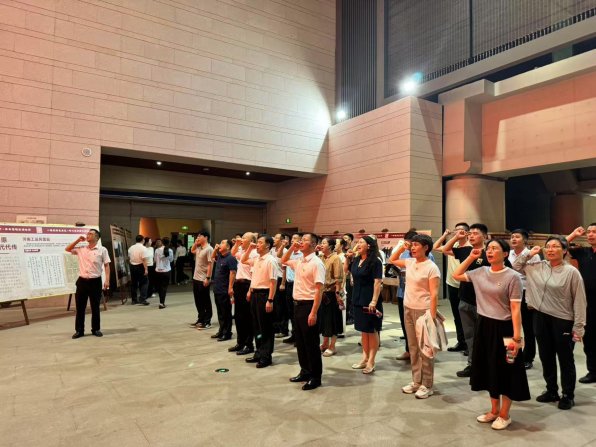 三是重溫入黨誓詞,砥礪初心使命。在紀念館宣誓廳鮮紅的黨旗下,全體黨員整齊列隊、高舉右拳,重溫入黨誓詞,錚錚誓言不僅是對入黨初心的回溯,更是對使命責任的鄭重承諾,激勵著每一名黨員干部以更加飽滿的熱情、更加昂揚的斗志投入到商務工作中,永葆共產黨員的政治本色。